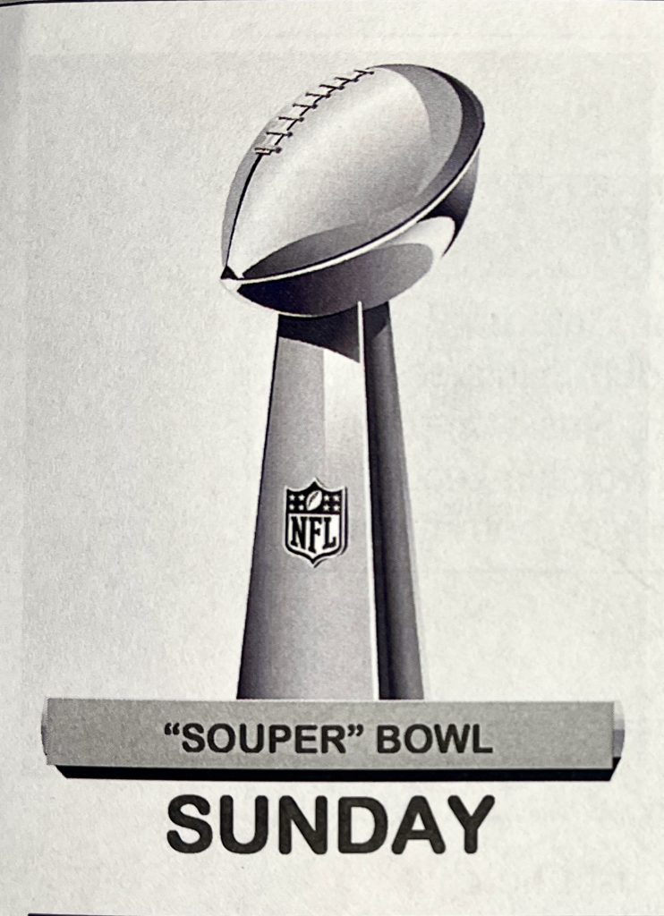 "SOUPER" Bowl fellowship and offering- Our annual "Super" Bowl offering will be received on Sunday, February 8th. All the funds will benefit our Saturday Servants. As a church, we strive to help the community and we take part in the Saturday Servants, which provides 3oo bag lunches to try and help "combat "TACKLE" hunger within the community. We are blessed to be able to participate 6 times a year. If you wanted to donate to this ministry and aren't able to be with us, we now have on-line tithing through Tithely. The "give" in the upper right hand corner of our homepage will take you to the site. There you can select the specific funds you want to contribute to. Following our morning worship on 2/8/2026 will have a fellowship meal. So bring your favorite soup or stew and be part of our "Souper Bowl" Sunday fellowship.